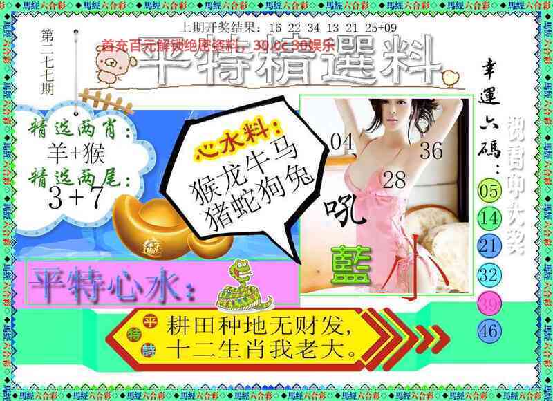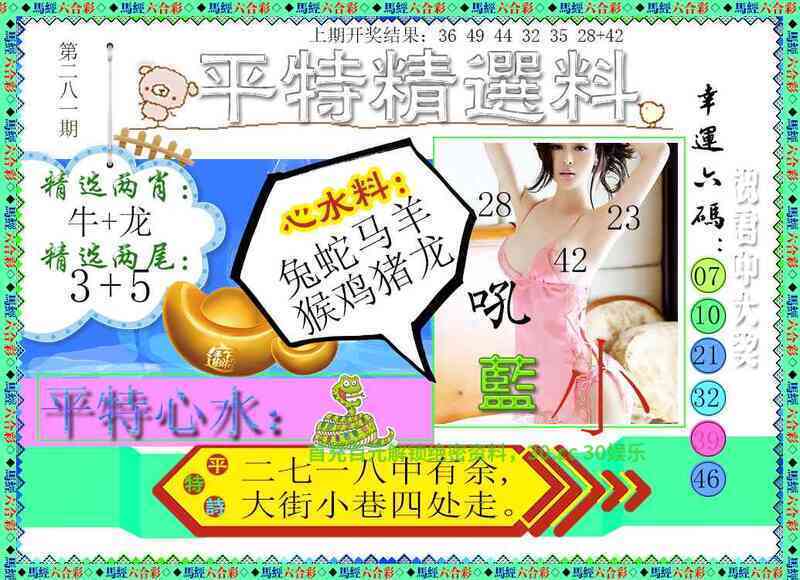 277期【解一句真言】:月照绿柳夜更长,夜更长,解夜肖牛鼠虎猪鸡狗 王牌看好生肖:牛鼠虎猪鸡狗 王牌看好10码:05.41.18.42.16.40.07.31.21.32 |